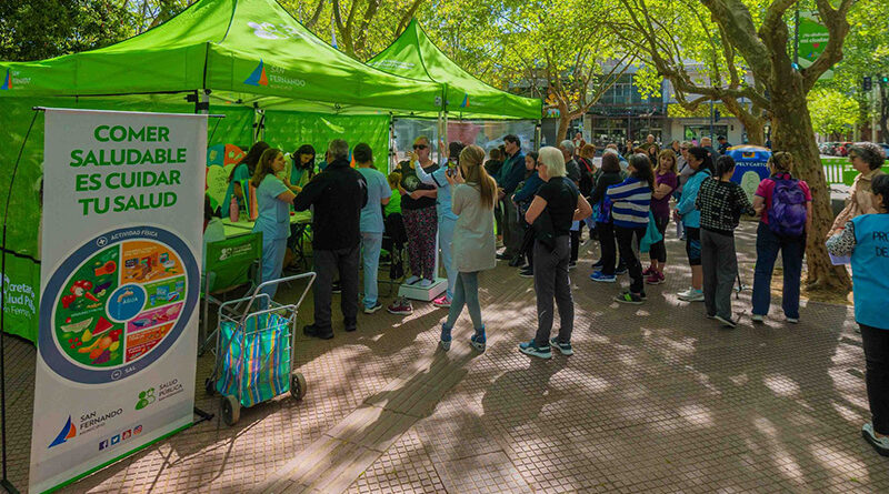 En adhesión al Dia Mundial del Corazón, el Municipio de San Fernando ofreció a las vecinas y vecinos en la Plaza Mitre del casco céntrico los servicios de atención gratuita que más ayudan al cuidado cardiovascular. Acompañaron esta actividad la Concejal Alicia Aparicio, ex Diputada Nacional; y el Secretario de Salud municipal, Marcelo Campos.