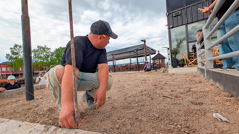 Hasta el momento se concretaron 45 metros de viga con tabiques de hormigón que servirán de base para los bancos, mientras se avanza con la preparación de los 35 metros restantes para su posterior hormigonado y finalización de la estructura completa del mirador.