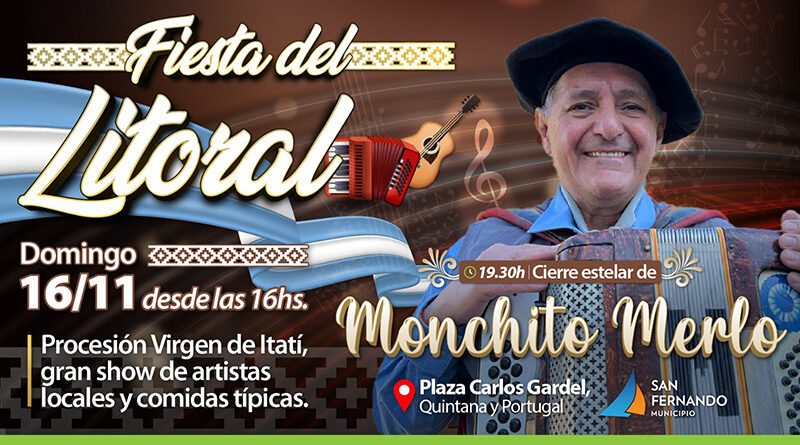 El Municipio de San Fernando invita a los vecinos a una nueva edición de la Fiesta del Litoral, celebración que reúne a las familias para una jornada a pura música popular. Será este domingo 16 de noviembre en la plaza Carlos Gardel, ubicada en Quintana y Portugal.