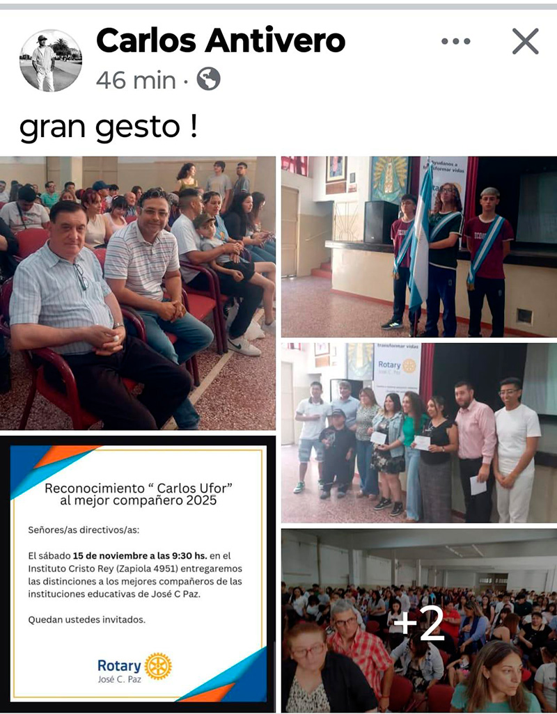 En tanto, el 15 de noviembre participé en el Instituto Cristo Rey del acto de distinciones a los mejores compañeros de las instituciones educativas de José C. Paz.