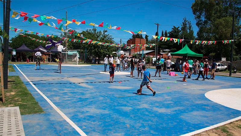 El nuevo espacio público “La Canchita del Fondo” está ubicado en Padre Acevedo y Los Patos. El Municipio llevó adelante una serie de mejoras integrales consolidándolo como un punto de encuentro clave para la vida comunitaria de los barrios Uspallata e Iberlucea.