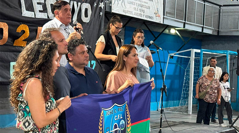 Luego de las palabras del director del CFP 401 que hizo un raconto de las actividades realizadas a lo largo de 2025 y expresó agradecimiento a todo el personal y estudiantes tocó la palabra al Director del CFL 402 Victor Zalazar quien, mediante su encendida oratoria, hizo desplegar la flamante bandera del Centro de Formación 402 con cuatro instructores que continúan desde marzo del año 2000 “cuando en José C. Paz no había nada y Mario Ishii, hoy senador, seis veces intendente y Vicepresidente de la Red de Ciudades del Aprendizaje se puso el municipio al hombro”