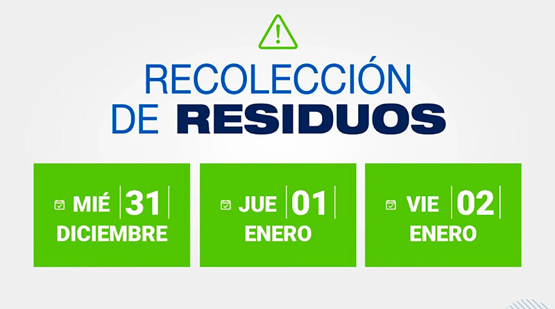 El miércoles 31 de diciembre, la recolección se realizará con normalidad en avenidas principales y centros comerciales en el horario diurno, desde las 6 a 16 horas, y contará con dos recorridos en las mismas zonas entre las 16 y las 21 horas.