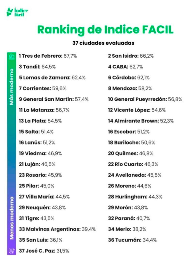 El distrito se ubica solo por detrás de Tres de Febrero, consolidándose como referente en simplificación administrativa, digitalización y mejora de la experiencia ciudadana.