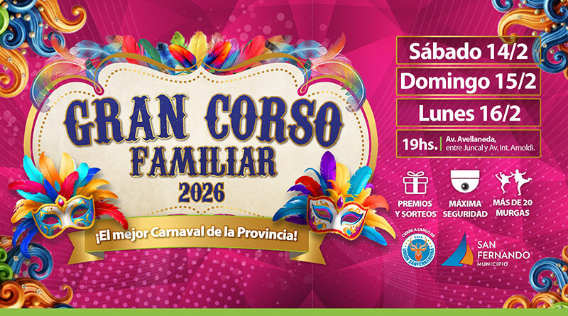 El “Gran Corso Familiar” 2026 presentará un enorme despliegue con las murgas de la ciudad, en reconocimiento a su gran trabajo social en cada barrio para la contención e inclusión, facilitando el acceso de miles de familias a programas de Salud, Medio Ambiente y seguridad en el hogar; además de sostener un fenómeno cultural muy popular en San Fernando.