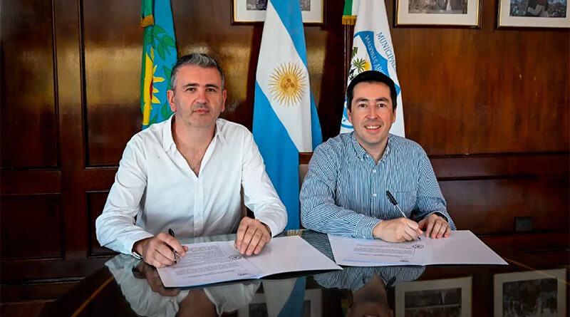 El intendente de Malvinas Argentinas, Leo Nardini, encabezó la firma de un Convenio Marco de Cooperación y Colaboración con el intendente de La Falda, Córdoba, Javier Dieminger, reelecto en 2023 para su segundo mandato por Juntos por el Cambio.