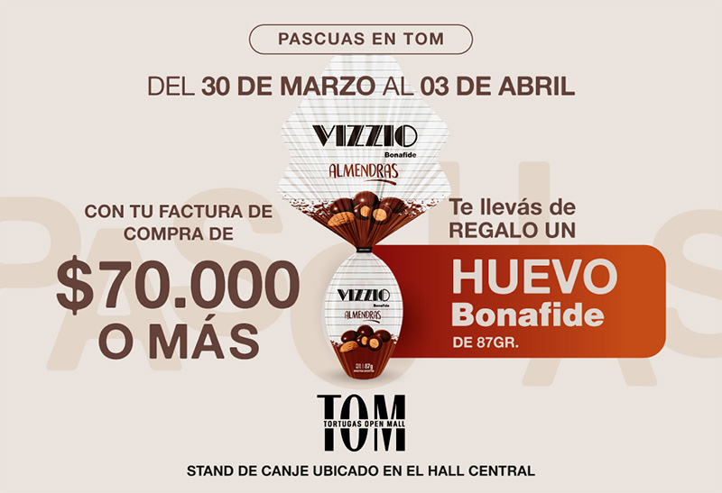 Además de esta promoción especial por Pascuas, quienes recorran TOM también podrán disfrutar de distintas actividades de entretenimiento. Entre ellas se destacan espacios recreativos para los más chicos, como Neverland y Mundo Cartoon, con juegos y atracciones inspiradas en sus personajes favoritos.